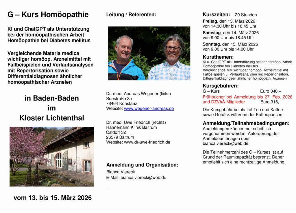 neuer Drei Jahres Kurs beim BVhÄ ab Herbst 2025 – jeweils 6 WE pro Ausbildungsjahr ( genaue Termine werden noch bekanntgegeben)